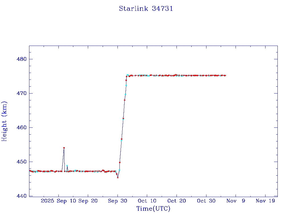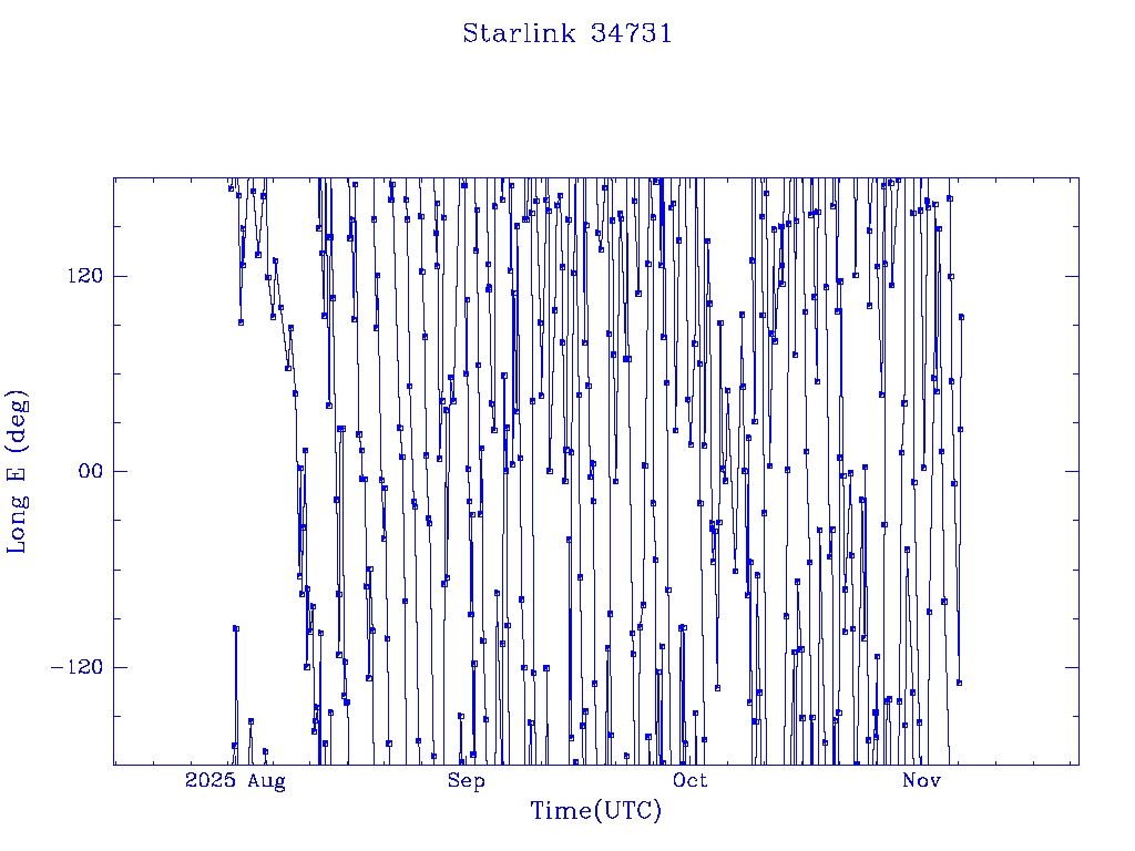 | Starlink 34731 | S65029 | O | 2025 Jul 30 | * | - |  |  |  |