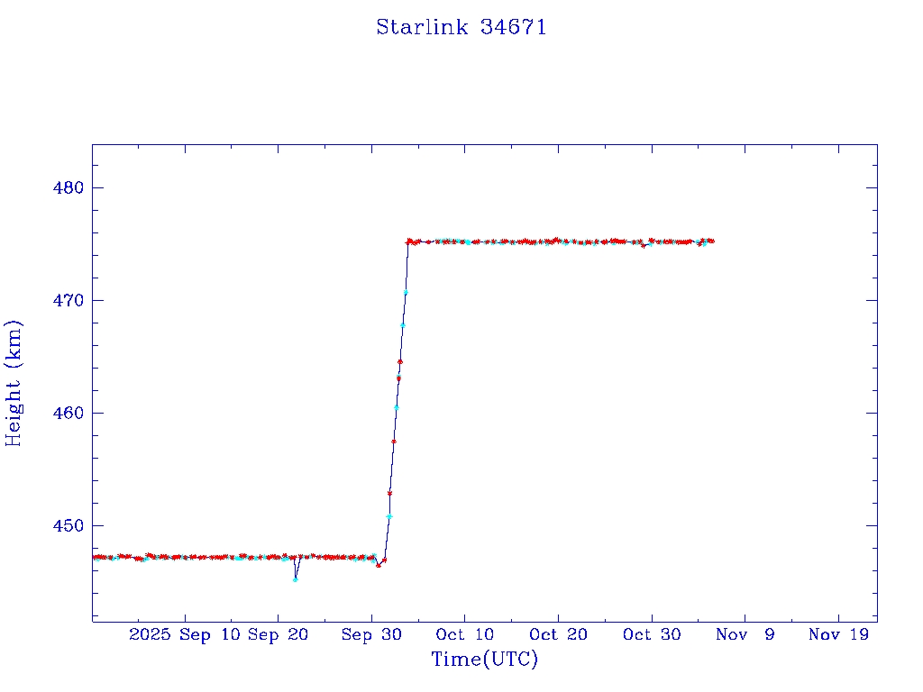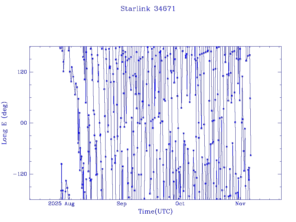 | Starlink 34671 | S65033 | O | 2025 Jul 30 | * | - |  |  |  |