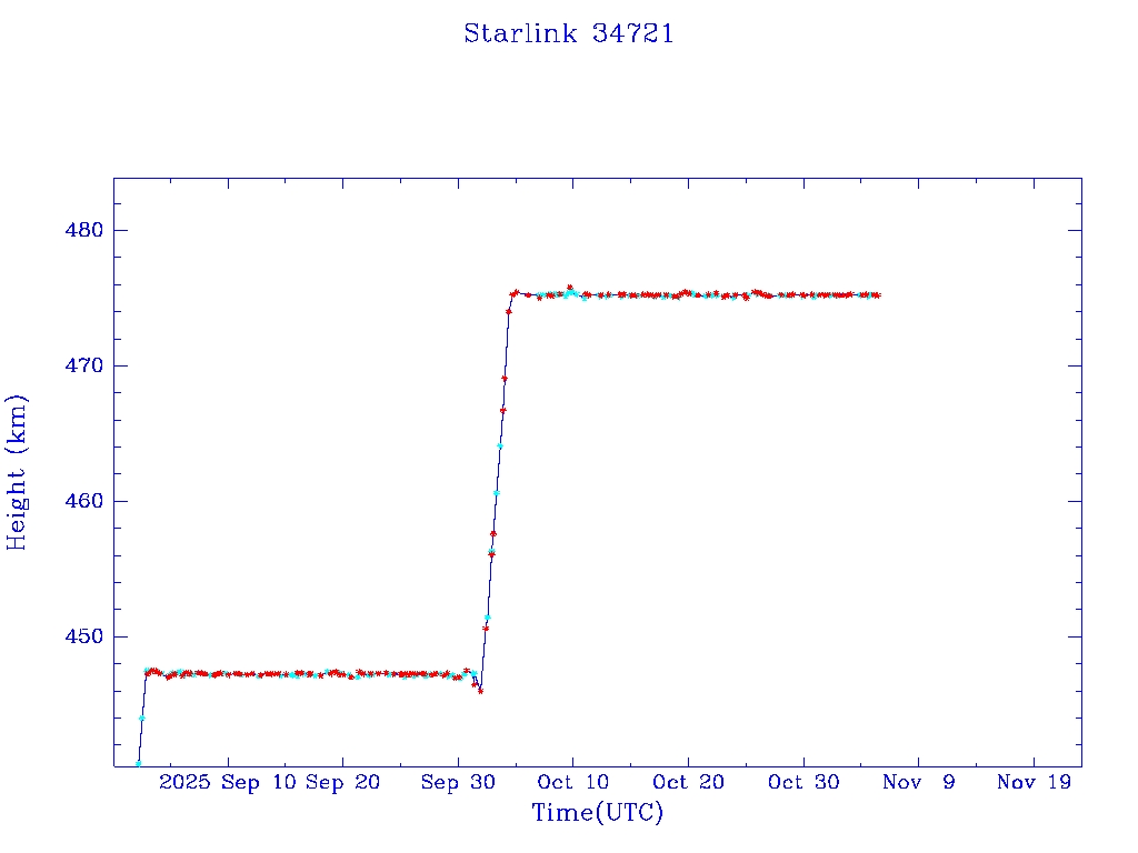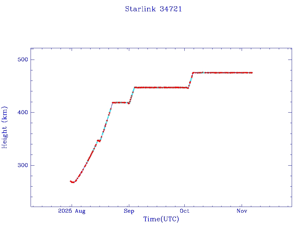 | Starlink 34721 | S65039 | O | 2025 Jul 30 | * | - |  |  |  |